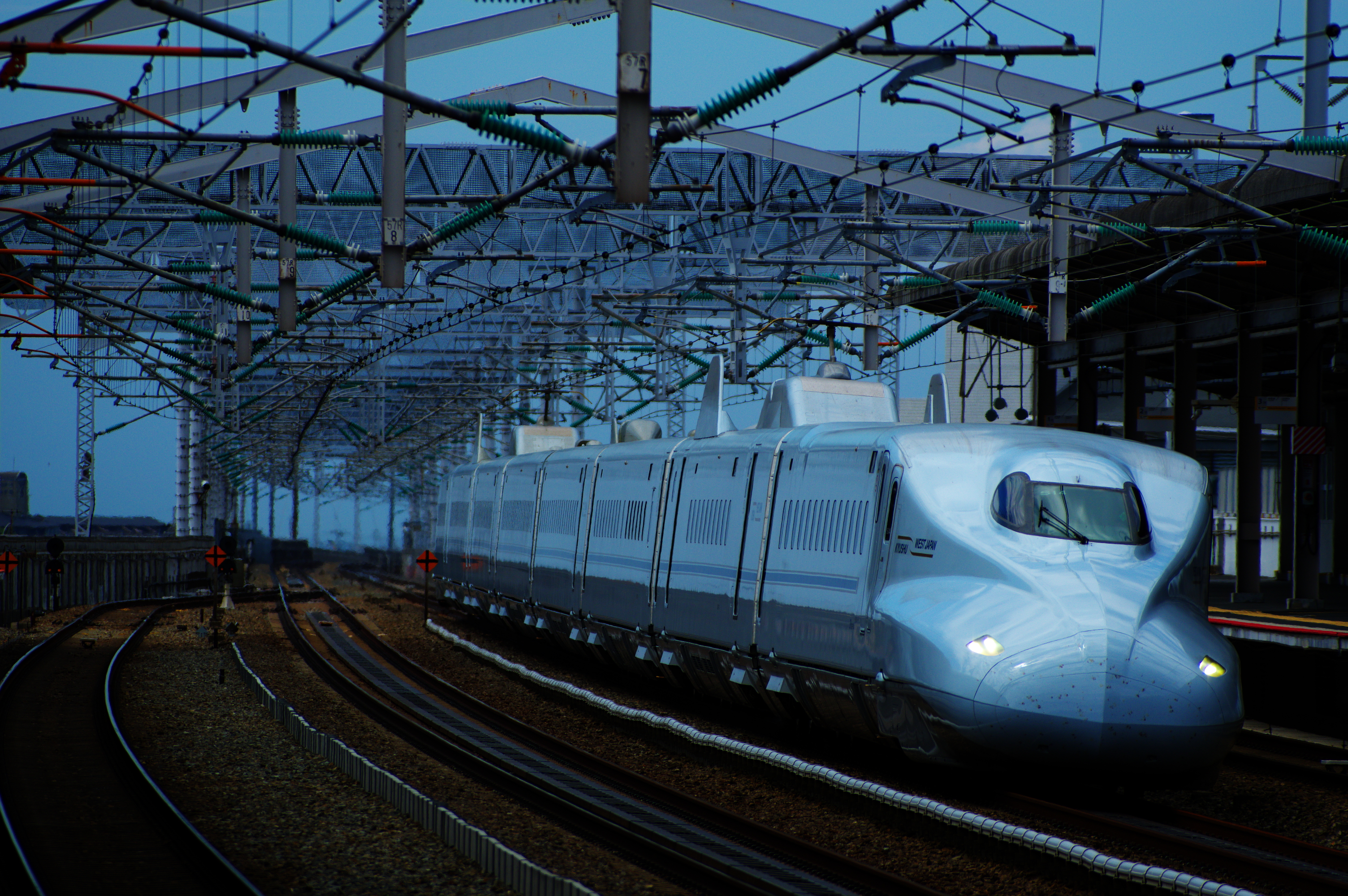 2023-08-24 230819_山陽新幹線 鉄道 日常 PENTAX KP + smc PENTAX-DA★60-250mm F4 ED[IF]SDMF5.0 1/2000 ISO-200 土曜日のカット。 東海道新幹線に比べると本数は少ないが、代わりに車種が豊富である点が山陽新幹線の面白いところだ。例えば同じN700系でも、九州新幹線に直通する8両編成の7000・8000番台は青磁をイメージした薄い青色を纏っている。 この日の空も、ちょうど同じような色をしていた。 ランキング参加中鉄道