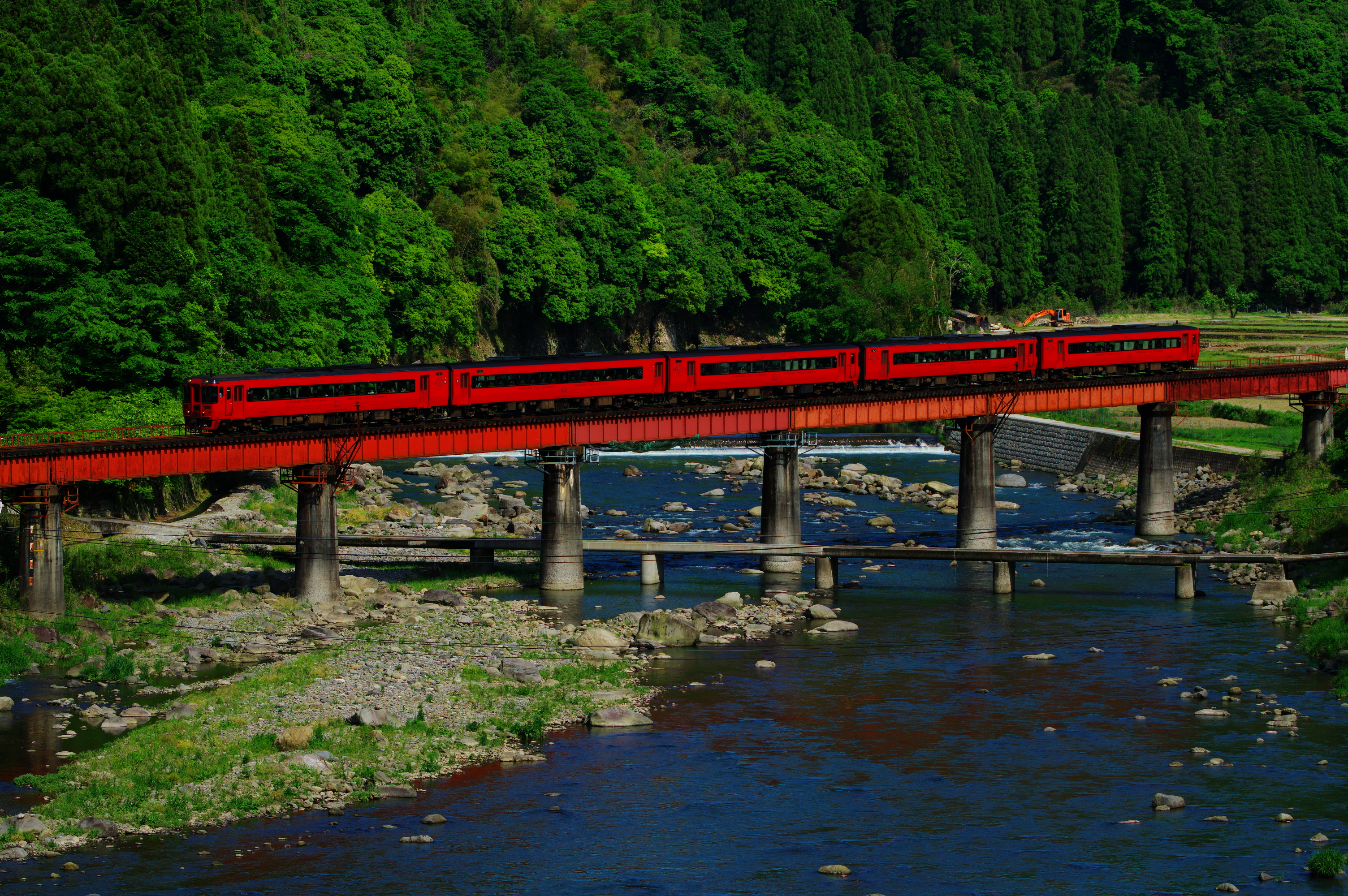 2024-05-14 240504_特急ゆふ4号 好きです大分県 日常 鉄道 PENTAX KP + smc PENTAX-DA★60-250mm F4 ED[IF]SDMF7.1 1/400 ISO-100 いくつものエンジンの連なりが、轟音を立てて山間の川を渡る。 長い気動車特急はやっぱり良いなぁ。 ランキング参加中鉄道